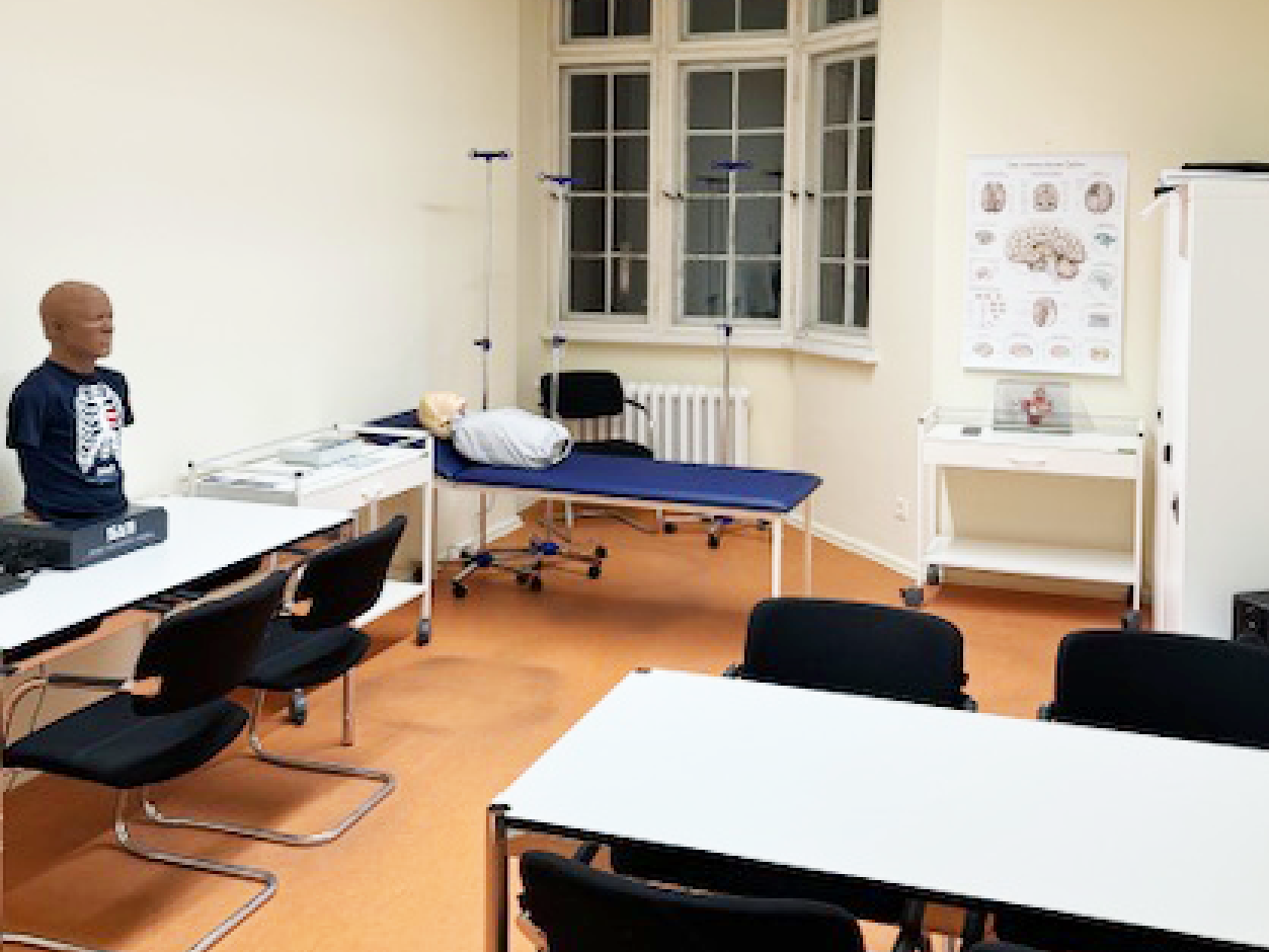 Studierende vertiefen in intensiven praktischen Ausbildungsteilen die Grundlagen ärztlichen Handelns und üben im klinischen Setting die Arbeit am und den Umgang mit Patient:innen. Direkt auf dem Campus des Helios Klinikums Berlin-Buch befindet sich das Haus 214. In diesem historischen Ambiente – ausgestattet mit aktueller Forschungslektüre und modernstem Equipment – lernen und forschen die Studierenden vom 5. bis zum 10. Semester. In geräumigen Skill Labs können sie Ihre ärztlichen Fähigkeiten vertiefen, an lebensnahen Modellen medizinische Grundfertigkeiten, wie Blutabnahme oder Pulsmessungen üben und in realistischen Simulationen u.a. Gespräche mit Patient:innen und Angehörigen nachvollziehen. Umfangreiche Recherchen, entsprechend dem neuesten Wissenschafts- und Forschungsstand, sind in der integrierten Bibliothek ebenfalls möglich. Studierende haben Zugriff auf über 3.000 Titel zu vorklinischen und klinischen Inhalten im Printbestand und auf über 25.000 E-Books und 30.000 E-Journals.
