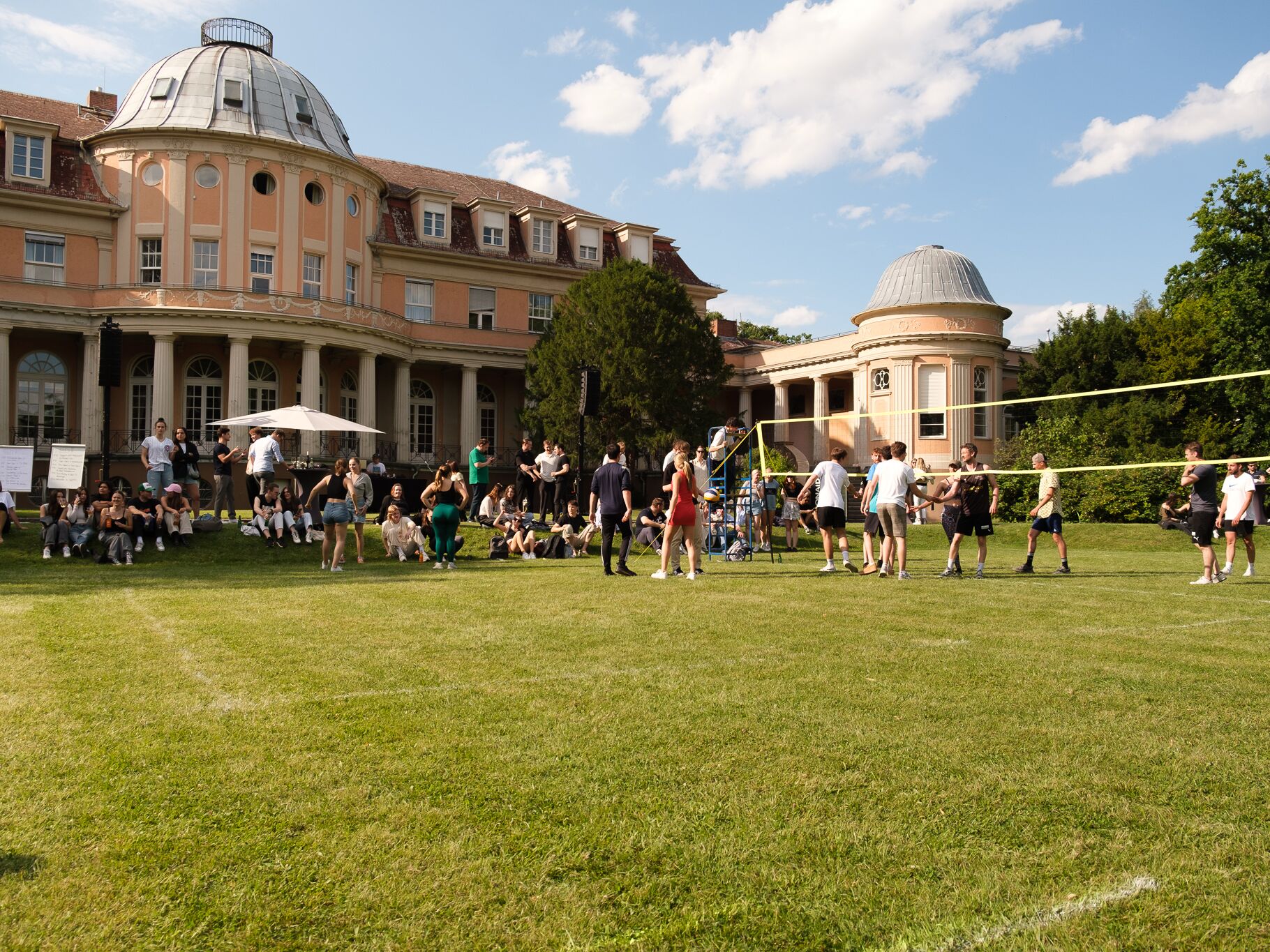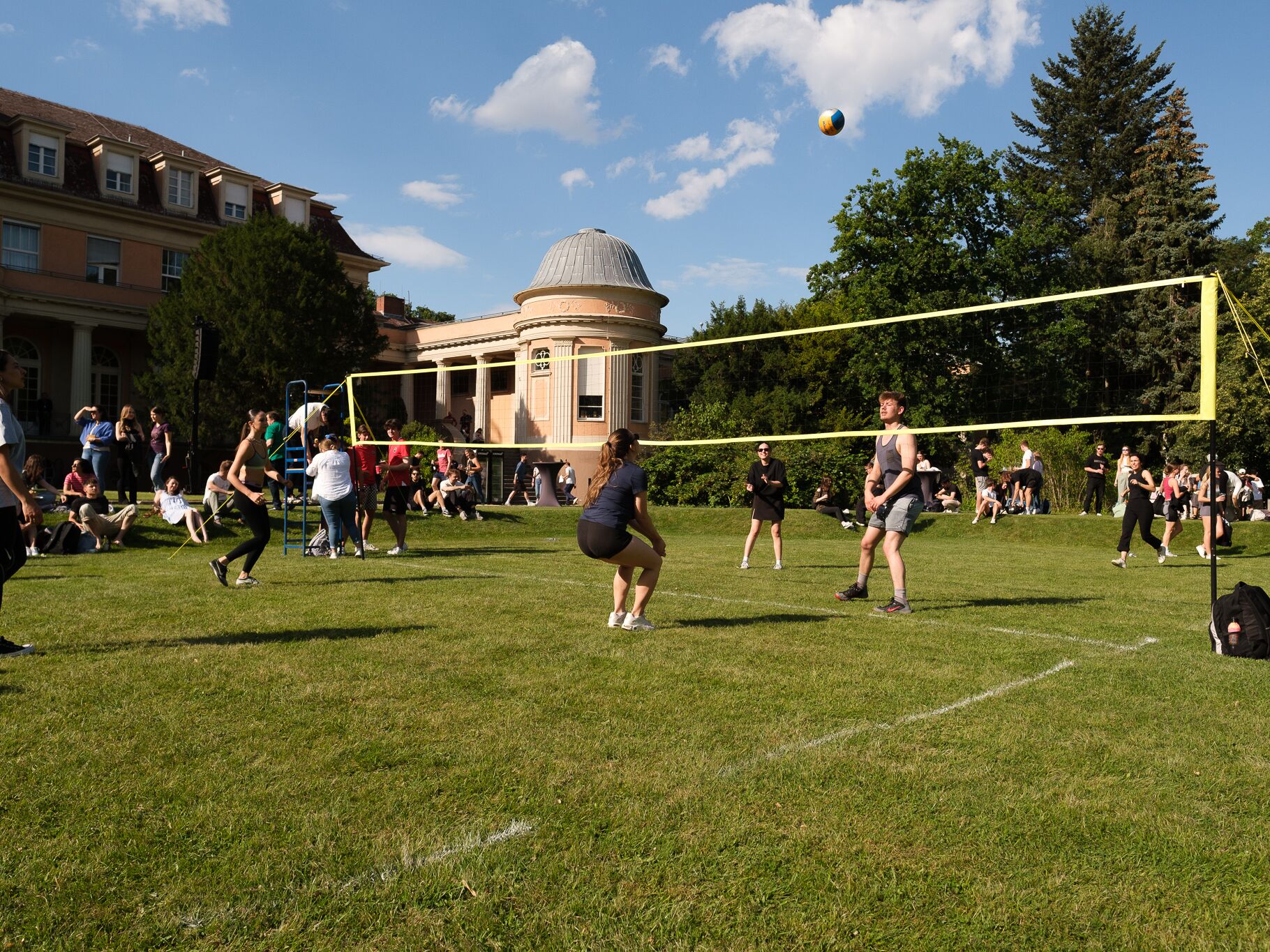 Teil des Sommerfestes ist traditionell unser legendäres Volleyballturnier, bei denen sich die Studierenden spannende Volleyballpartien mit Lehrenden und dem Hochschulmanagement lieferten.
