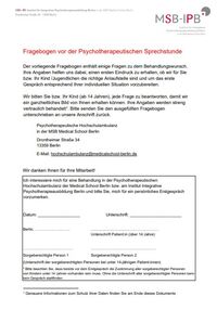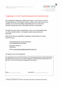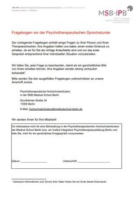 Die Psychotherapeutische Hochschulambulanz in der MSB hat ihren Standort in der Drontheimer Straße 34 - ebenfalls ist hier die Spezialambulanz für Zwangsstörung. Die Spezialambulanzen für Integrative Psychotherapie bei Aphasie, Online-Interventionen, Psychotherapie im Alter, Suizidprävention und Kinder und Jugendliche in Fremdunterbringung befinden sich in der Außenstelle Johannisberger Straße 38 in 14197 Berlin. Ab November 2024 wird die Hochschulambulanz durch die Außenstelle Berlin-Buch in der Karower Straße 15a in 13125 Berlin erweitert. Die Hochschulambulanz in der Außenstelle Berlin-Buch befindet sich auf dem Gelände unseres Praxispartners der Humanmedizin dem Helios Klinikum Berlin-Buch, im Haus 214 (2. OG).
